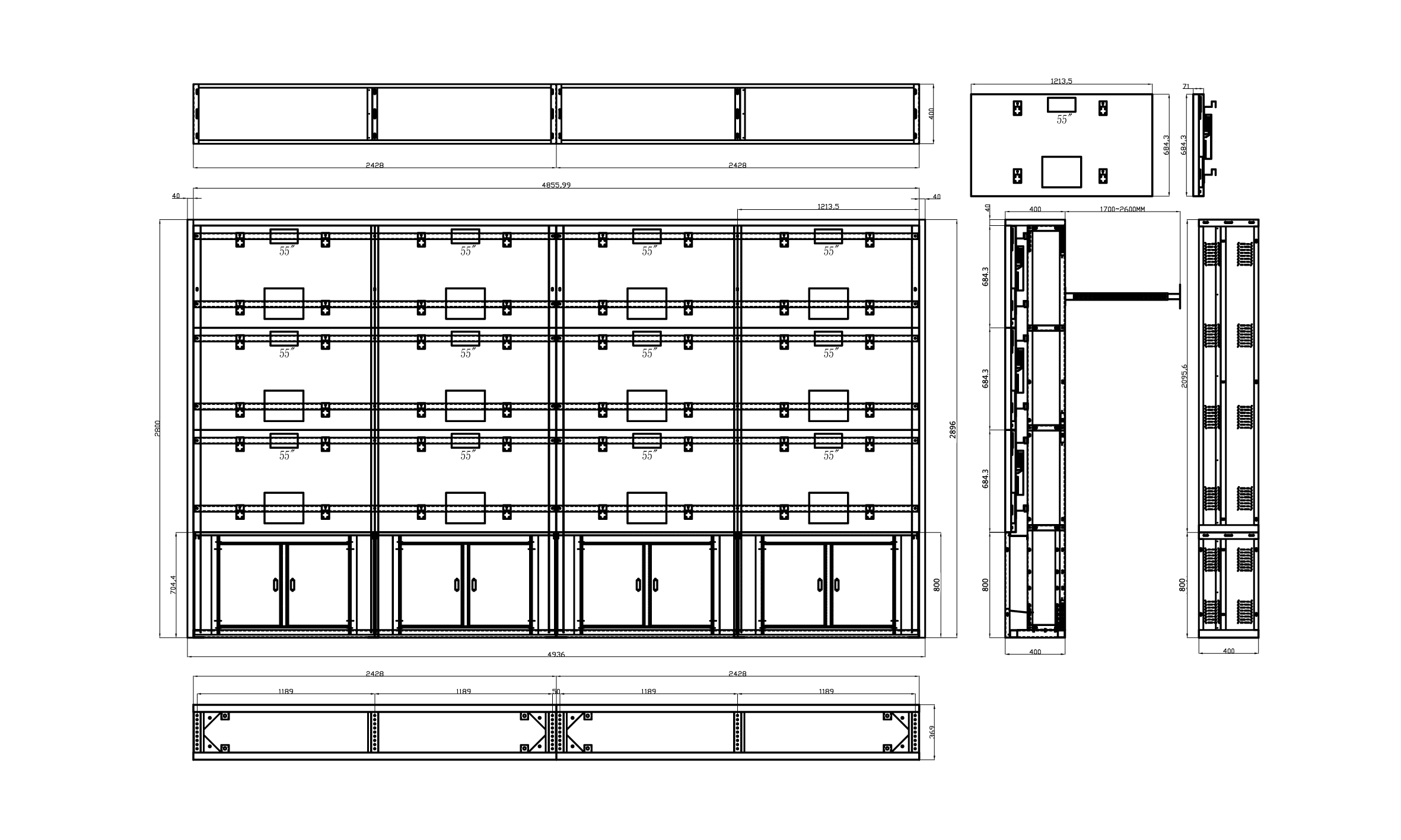 根據(jù)施工現(xiàn)場結(jié)構(gòu)狀況,大屏的結(jié)構(gòu)我們采用抽屜式設(shè)計(jì)方案,所有的顯示單元都可以獨(dú)立抽出,不需要動整個拼接墻就可以進(jìn)行屏體的拆卸和安裝。